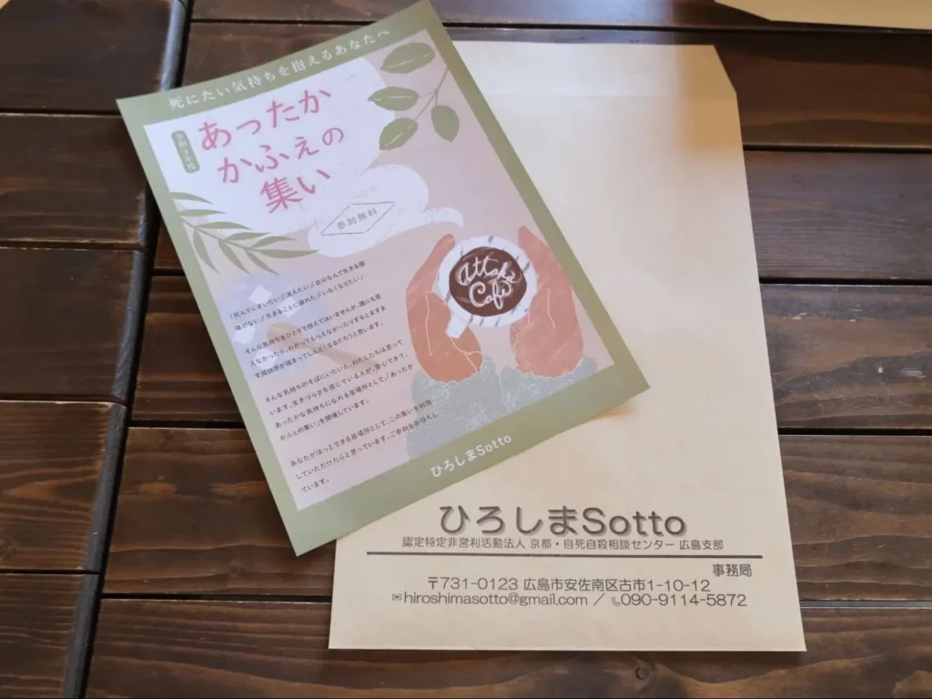ひろしまSottoでは、月に一度、広島市内で死にたい思いを抱えた人のための居場所として「あったかかふぇの集い」を開催されています。今回は代表の武田慶之さんに、コロナ禍での居場所づくりの活動、社会に潜む生きづらさについてお話を伺いしました。