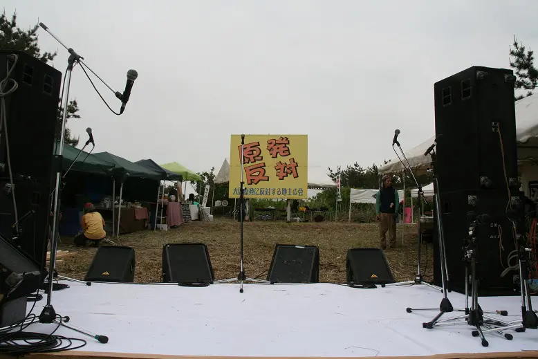 音楽イベントであり、反核運動なので、ライブステージで使う音楽の機材も反核のものを使用しています。電気も山形のソーラーワールドさんにお願いして、移動型の太陽光発電設備を青森まで持ってきてもらっています。第1回は「あさこはうす」の敷地内での開催でしたが、第5回から「あさこはうす」近くの共有地に移動し、開催しています。
