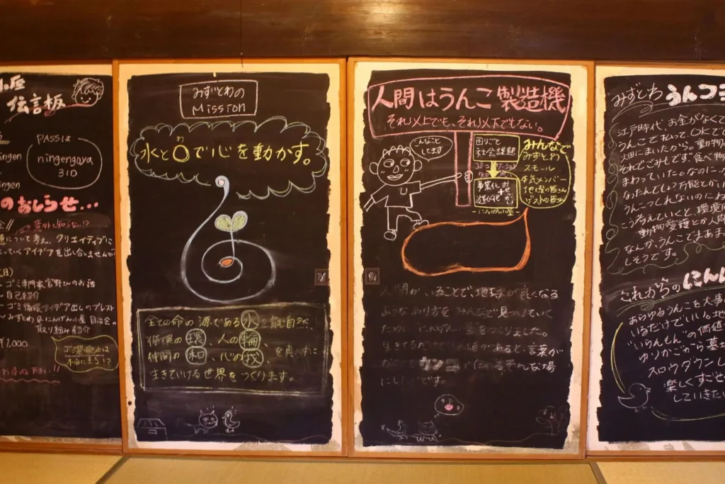 みずとわの想いが、にんげん小屋みずとわの襖に描かれていました。