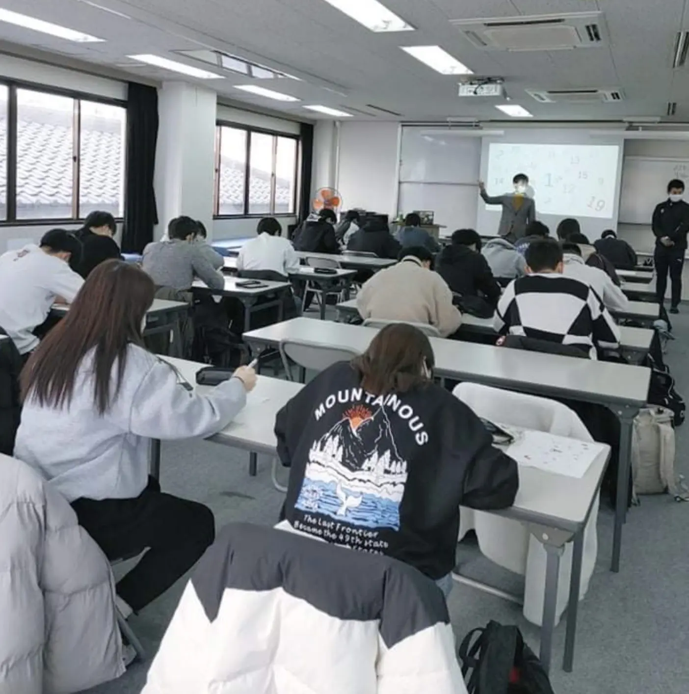 学習塾では算数が苦手な生徒から得意な生徒まで年代もさまざまな生徒が1つの教室で寺子屋のように学んでいます。