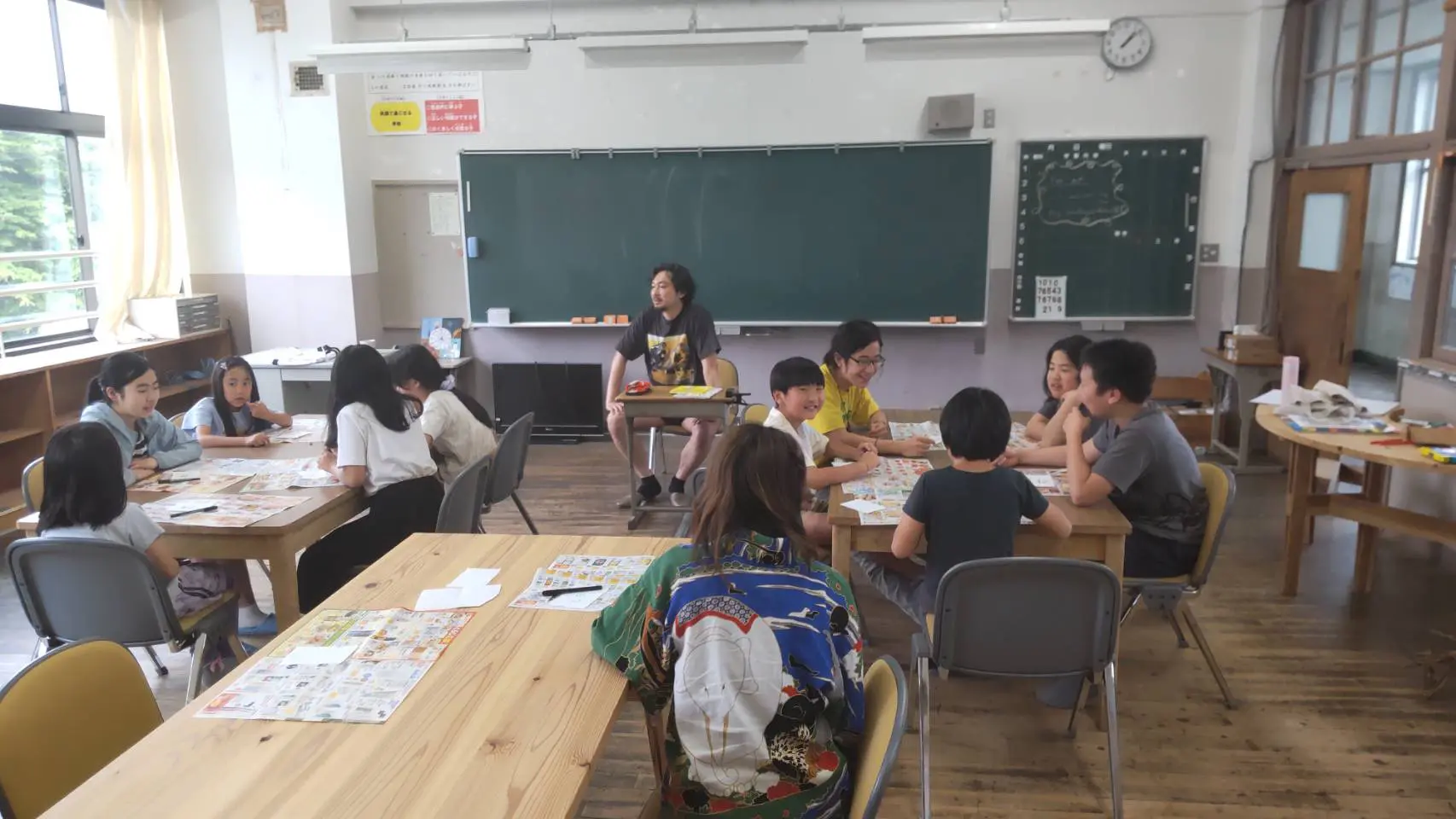 フリースクールでは、豊かな自然の中で川遊びや魚とり、栗拾いなど、四季折々の自然体験を通じて学びます。また、地域の人々の協力を得て、米作りや野菜作りの農作業も体験でき、自然と共に生きる知恵を身につけます。AIを活用した個別最適化の学習プログラムに取り組むことで、一人ひとりのペースや興味に応じた学びを進められます。さらに、対話を通じた問題解決や自他理解の深化に加え、興味を持った活動に積極的に取り組む環境が整っています。商品開発や出店の経験を通じ、ビジネスやお金についても実践的に学ぶことができます。